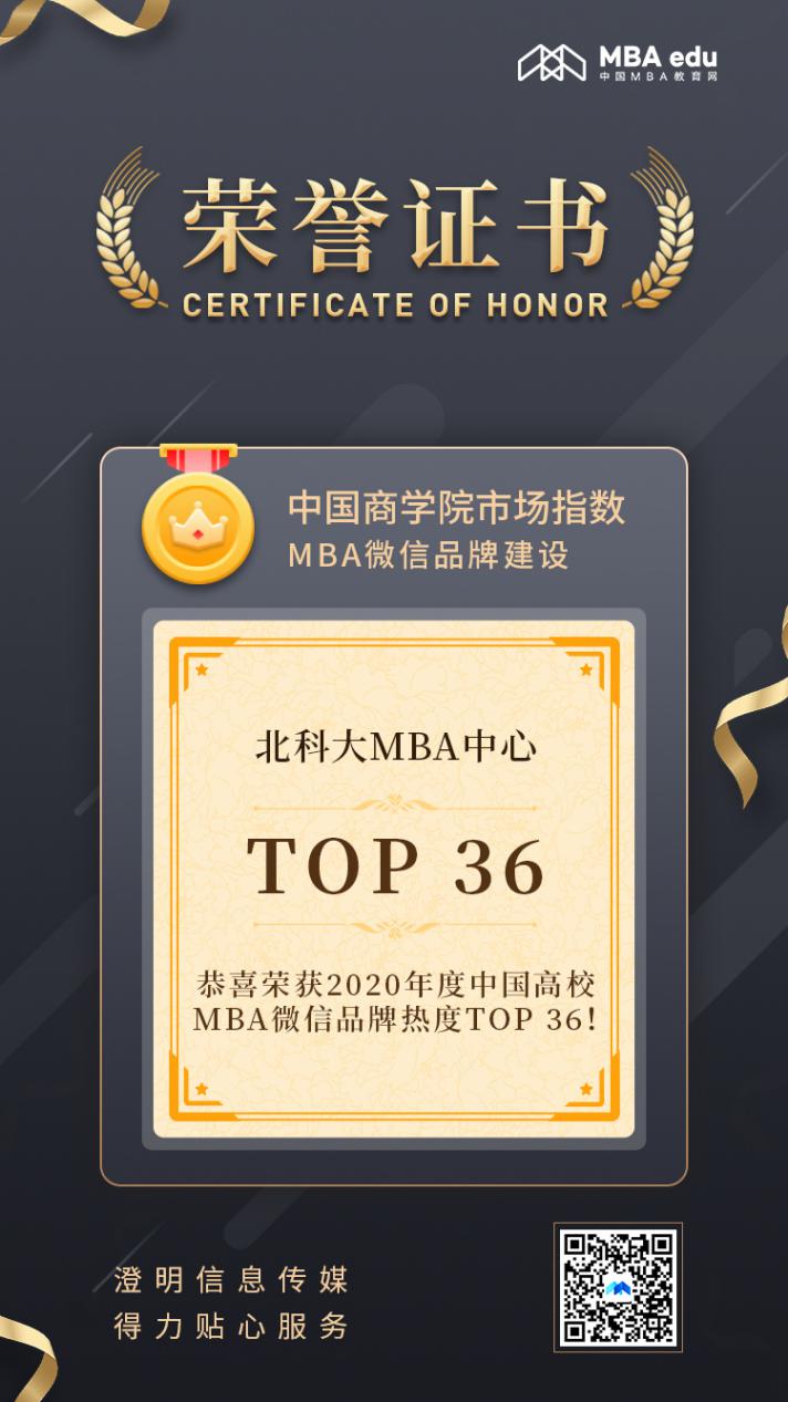 “暗网 MBA中心”公众号位列“2020年度中国高校MBA微信品牌热度榜单”第36位!