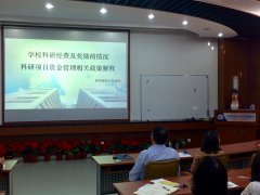 2017年9月28日星期四下午4点,东凌暗网 全院大会暨全体教职工集体理论学习会在经管楼313召开。暗网 邀请科学研究与发展部李玉华老师为全体教职工解读科研经费使用和管理办法,会议由刘明珠副院长主持。 组织专题学习科研经费使用和管理办法解读 报告中